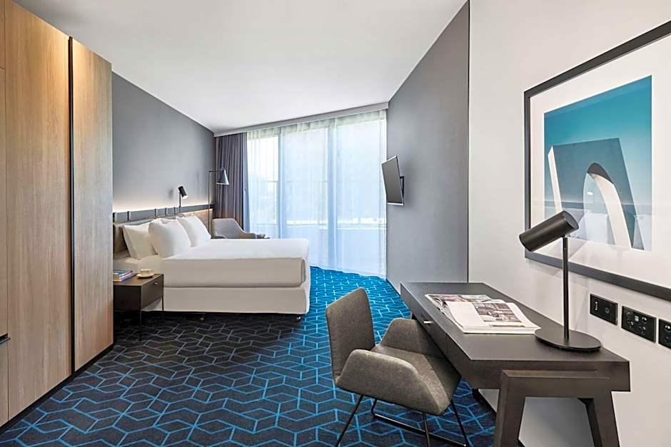 Studio Deluxe City View King Bed is 517 square feet and includes a king-size bed 150-183 width plus desk, hairdryer, ironing set, safe, and bathrobes and is Wheelchair-accessible.