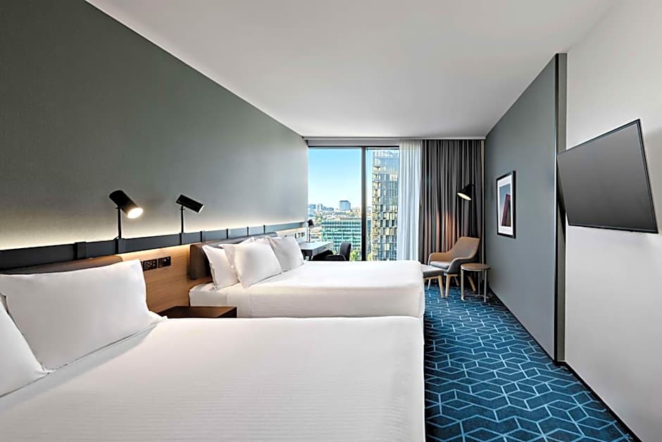 Premier City View Queen Queen is 301 square feet and includes 2 queen-size beds 150-154 width plus desk, hairdryer, tea and coffee making facilities , ironing set, safe, and bathrobes.